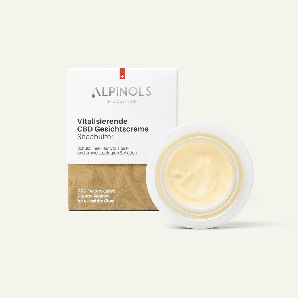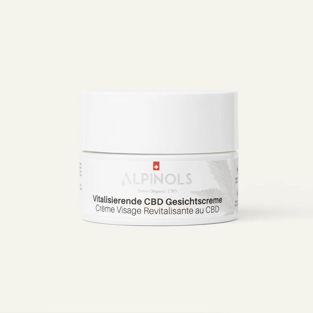 Für die vitalisierende CBD Gesichtscreme hat ALPINOLS eine einzigartige Formel aus natürlichen Inhaltsstoffen entwickelt. Die Kombination von unserem Bio-Full-Spectrum-Hanfextrakt mit hochwertigen Ölen aktiviert die Zellregeneration, nährt und schützt die Haut gegen aussere Einflüsse. Manuka-Honig hilft zusätzlich die Elastizität der Haut zu verbessern und sorgt für mehr Spannkraft. Die ätherischen Öle Ylang Ylang und Grapefruit verleihen der Gesichtscreme eine besondere natürliche Duftnote. Die vitalisierende CBD Gesichtscreme kräftigt die Haut von innen und bringt sie zum Strahlen.
